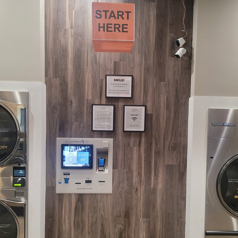 Card reader on machines for "Laundroworks" Laundry Card, available at our Kiosk to purchase for Washer & Dryer time.
